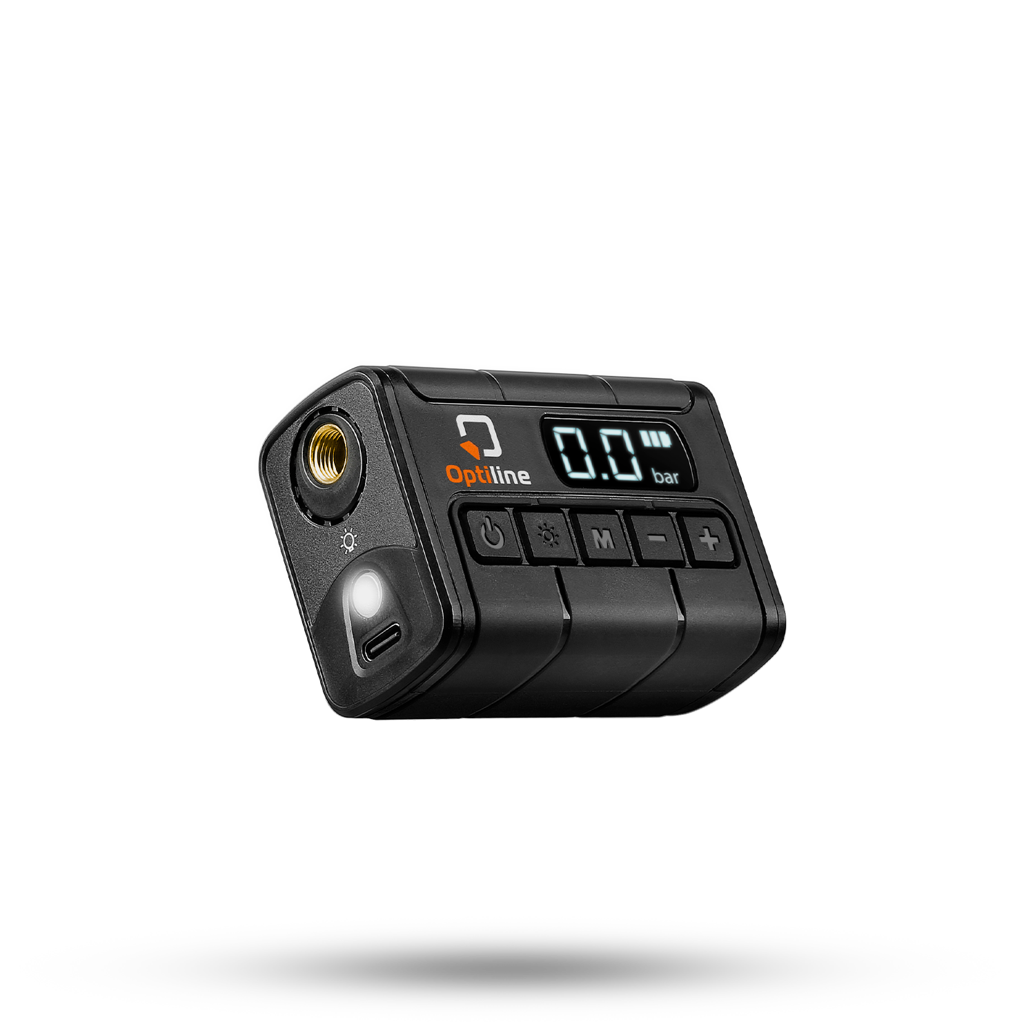 Inserisci l’adattatore corretto e collega il mini compressore alla valvola. Tieni premuto il pulsante ON/OFF per alcuni secondi per accendere il dispositivo: il display digitale mostrerà immediatamente la pressione attuale.